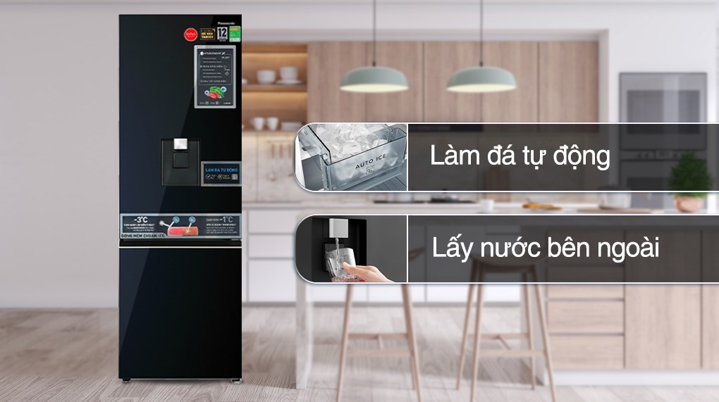 Không còn phải mất công sức châm nước vào từng khay đá hay tốn thời gian chờ đá đông khi đã có tủ lạnh Panasonic NR-BV361WGKV tích hợp chức năng làm đá tự động. Với chức năng này, bạn chỉ việc cho nước vào bình chứa riêng trong ngăn mát, tủ lạnh sẽ tự động bơm nước lên ngăn đá và làm đá viên liên tục cho đến khi đầy hộp đựng đá.