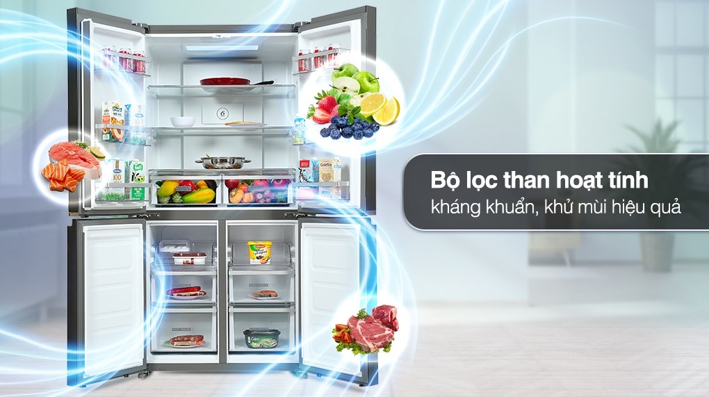 Sử dụng bộ lọc than hoạt tính giúp lọc sạch các bụi bẩn, vi khuẩn trong môi trường tủ lạnh, hạn chế tình trạng vi khuẩn sinh sôi bám dính lên thực phẩm gây ảnh hưởng đến sức khỏe người dùng.