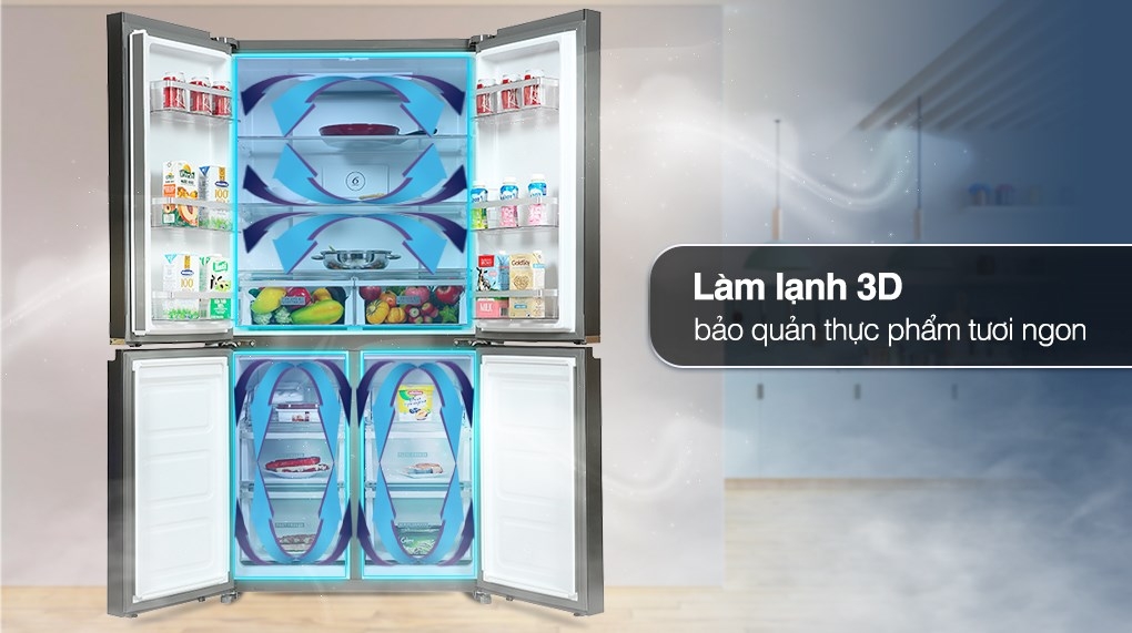 - Công nghệ làm lạnh 3D cho khả năng bảo quản thực phẩm vượt trội, đảm bảo hơi lạnh được thổi đều khắp các bề mặt thực phẩm.