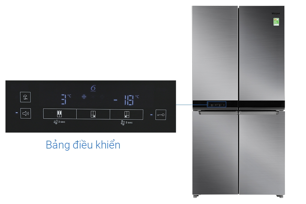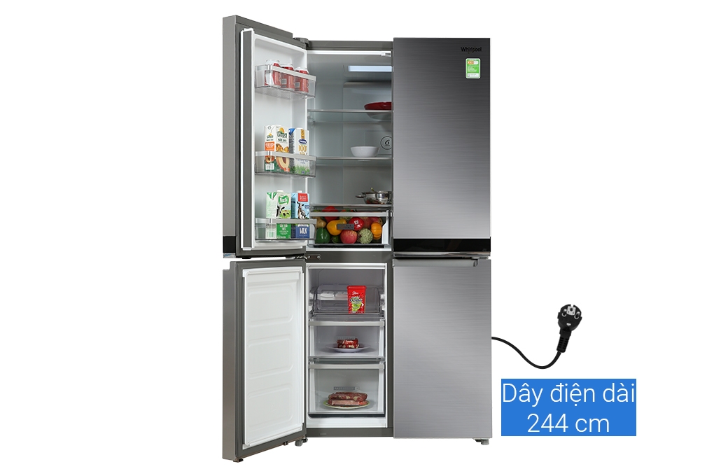 + Chiếc tủ lạnh Whirlpool này có dung tích lưu trữ 594 lít. Trong đó, ngăn mát chiếm 388 lít và 206 lít cho khu vực ngăn đông, để thoải mái lưu trữ thực phẩm cho gia đình có trên 5 thành viên.
